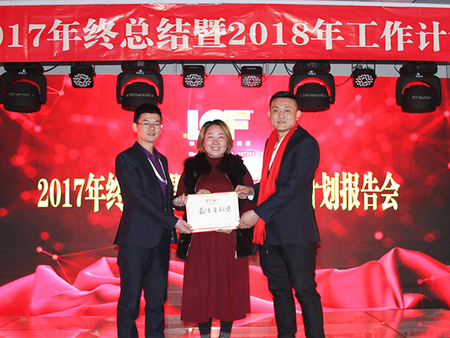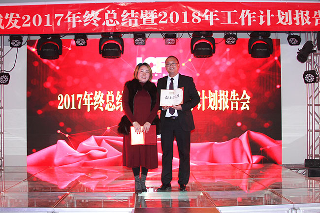 龍平芳女士為獲得“最佳貢獻獎”部門頒發(fā)證書